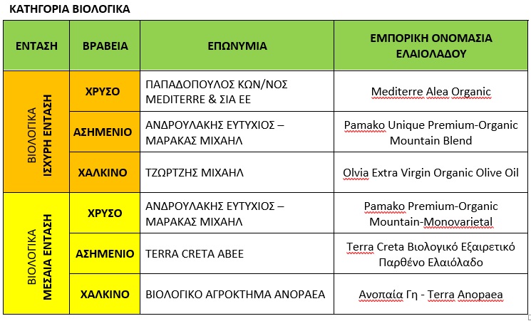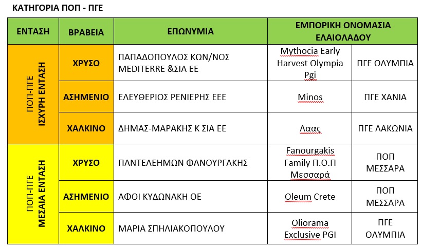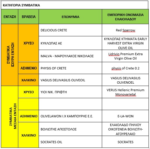 Απονομή Βραβείων IOOC KOTINOS 2019 – Όλες οι εταιρείες και τα ελαιόλαδα που διακρίθηκαν