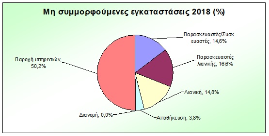 Σε 544 επιχειρήσεις – 8% διαπιστώθηκε η ύπαρξη μη συμμόρφωσης. Οι συγκεκριμένες επιχειρήσεις χωρίζονται στις εξής κατηγορίες :