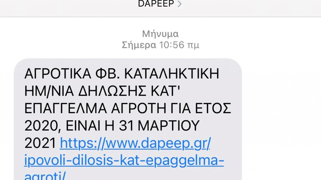 Έως και την 31η Μαρτίου 2021 θα καταβάλλονται οι ηλεκτρονικές δηλώσεις για κατ´ επάγγελμα αγρότες παραγωγούς για τη διατήρηση της ιδιότητά τους, σύμφωνα με τον ΔΑΠΕΕΠ.