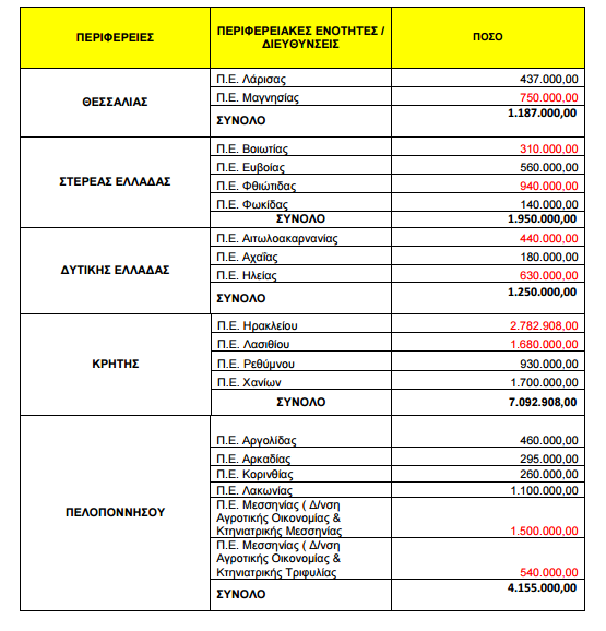Με την απόφαση αυτή, το ποσό, για παράδειγμα, της Π.Ε. Μεσσηνίας, Ηρακλείου, Λασιθίου, Μαγνησίας και Βοιωτίας για την κάλυψη της δαπάνης δακοκτονίας, προσαυξάνεται σε σχέση με την αρχική απόφαση. .