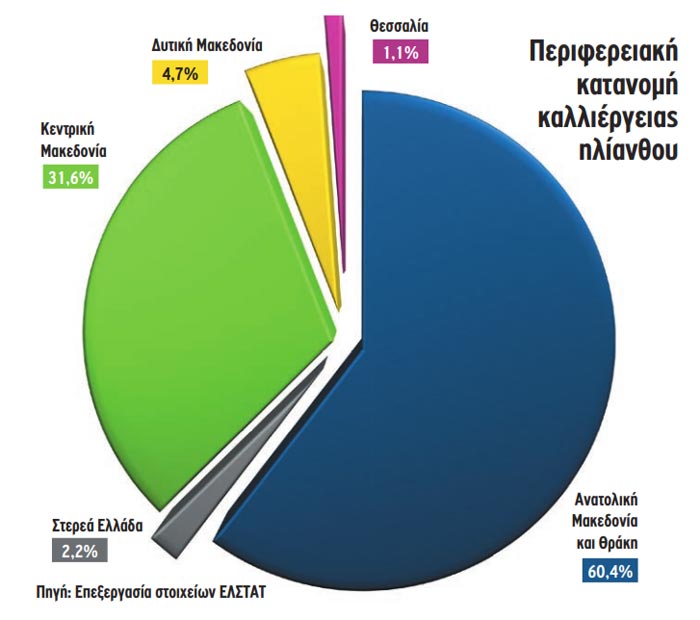 Αξίζει να σημειωθεί ότι, με βάση τα πιο πρόσφατα επίσημα στοιχεία της ΕΛΣΤΑΤ, η καλλιέργεια του ηλίανθου εμφανίζεται να «ευδοκιμεί» κατά κύριο λόγο στις περιφέρειες της Ανατολικής Μακεδονίας και Θράκης και της Κεντρικής Μακεδονίας, οι οποίες συγκεντρώνουν περισσότερο από το 90% των συνολικών εκτάσεων στη χώρα.
