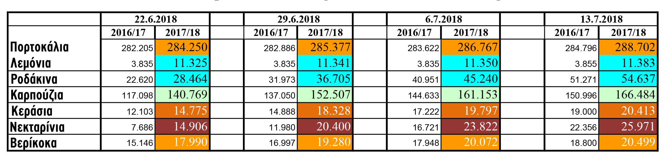 Δείτε ΕΔΩ τους πίνακες των εξαγωγών φρούτων και λαχανικών του Incofruit Hellas