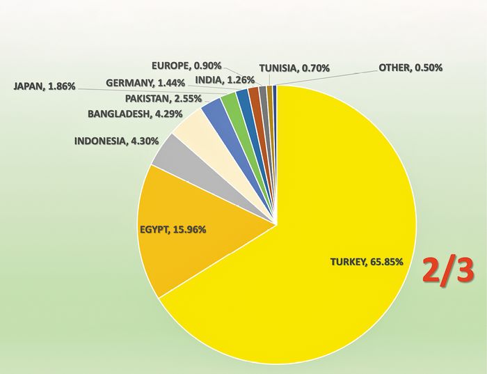 Τουρκία: Η «Κίνα της Ευρώπης» ζητάει όλο και περισσότερη ίναΗ Τουρκία αποτελεί τον βασικό αγοραστή του ελληνικού βαμβακιού, απορροφώντας σχεδόν τα 2/3 της εγχώριας παραγωγής εκκοκκισμένου. Από τον Αύγουστο του 2020 μέχρι τον Ιούλιο του 2021 απορρόφησε σχεδόν 178.000 τόνους, με την Αίγυπτο να ακολουθεί από αρκετά μεγάλη απόσταση με 73.100 τόνους. Δυνητικά αυτές οι δύο χώρες θα μπορούσαν να απορροφήσουν το σύνολο του ελληνικού βαμβακιού. Σύμφωνα με τον κ. Ψαρόπουλο, το αξιοσημείωτο με τη γειτονική χώρα είναι ότι, λόγω της γεωγραφικής της θέσης και της εγγύτητας στην Ευρώπη, αλλά και των αλλαγών στον χάρτη της παγκόσμιας αγοράς, αποτελεί σε επίπεδο κλωστηρίων την «Κίνα της Ευρώπης». Κατανάλωση 2,5 εκατ. τόνων σε δύο χρόνιαΟι ανάγκες της, αυτήν τη στιγμή, ξεπερνούν τους 2 εκατ. τόνους σε ετήσια βάση, όταν η παραγωγή τους δεν ξεπερνά τους 800.000 τόνους. Μέσα σε μια τριετία, οι εισαγωγές της αυξήθηκαν κατά σχεδόν 300.000 τόνους (από 875.360 τόνους το 2017/2018 στους 1.165.858 τόνους το 2020/2021). Η κατανάλωσή της συνεχίζει να αυξάνεται με ταχύτατους ρυθμούς και, σύμφωνα με εκτιμήσεις παραγόντων της αγοράς, δεν αποκλείεται μέσα στην επόμενη διετία να φτάσει τους 2,5 εκατ. τόνους. Από την ανάπτυξη αυτή είναι σαφές ότι μπορεί να επωφεληθεί και η χώρα μας, αξιοποιώντας το αβαντάζ της σύντομης θαλάσσιας ή, ανάλογα με την περίσταση, της χερσαίας μεταφοράς. Χώρες προρισµού ελληνικού βάµβακος 2021-22