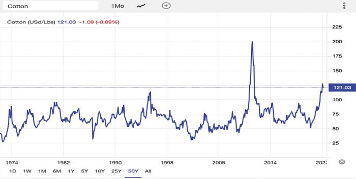 Όπως εύστοχα έγραψε πρόσφατα Αμερικανός αναλυτής, το ερώτημα που πλανάται αυτήν τη στιγμή στους διεθνείς κύκλους έχει να κάνει με το «αν θα υπάρχει αρκετό βαμβάκι το 2022». Αυτή η αμφιβολία έχει στηρίξει και την άνοδο των συμβολαίων Δεκεμβρίου στη Νέα Υόρκη, τα οποία έχουν ξεπεράσει πλέον τα 110 σεντς/λίμπρα, με τάση να δοκιμάσουν ακόμα ψηλότερα όρια.