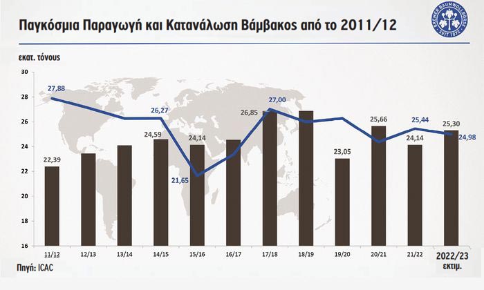 Σε παγκόσμιο επίπεδο, η χώρα μας καταλαμβάνει το 2,8% του εξαγωγικού όγκου, ποσοστό που την καθιστά μια μετρήσιμη δύναμη, με δεδομένο ότι είναι βασικός προμηθευτής της Τουρκίας. Από τους μεγαλύτερους εισαγωγείς βάμβακος είναι η Κίνα (η οποία, όμως, έχει μειώσει τη ζήτησή της), το Μπαγκλαντές, το Βιετνάμ και το Μπαγκλαντές, ενώ από πλευράς ζήτησης επισημάνθηκε, τέλος, ότι υπάρχει αυξητική τάση των καταναλωτών του πιστοποιημένου και βιώσιμου βαμβακιού.