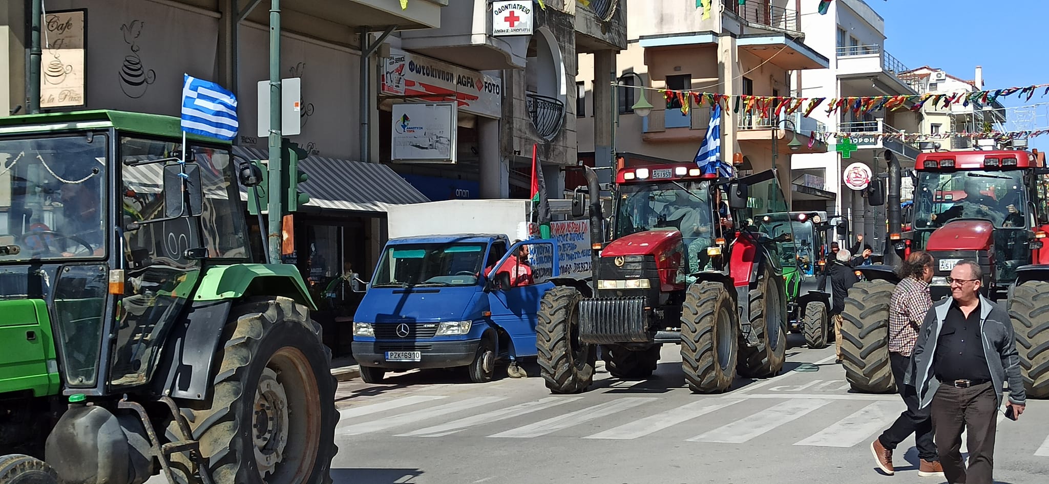 Στην πορεία συμμετείχαν εργαζόμενοι, φοιτητές, και σύλλογοι αγροτών με τα τρακτέρ τους κ.α.