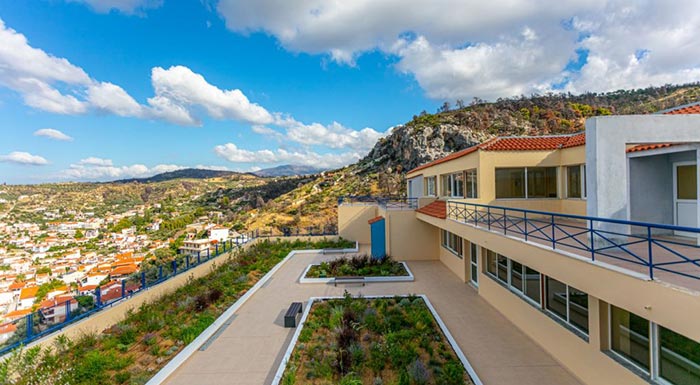 Στο Γυμνάσιο-Λύκειο Λίμνης, η κατασκευή πρότυπης «πράσινης» στέγης με χαμηλή βλάστηση στο αίθριο του πρώτου ορόφου και η αντικατάσταση δύο στεγασμένων κατασκευών με ειδικά καθίσματα στον προαύλιο χώρο, προσφέρουν πολλαπλασιαστικά οφέλη για τη σχολική κοινότητα. Πλέον, οι μαθητές και καθηγητές διαθέτουν προς χρήση ένα χώρο υψηλής αισθητικής, ενώ παράλληλα δόθηκε λύση σε σημαντικό πρόβλημα στεγανότητας που αντιμετώπιζε επί χρόνια το σχολείο.