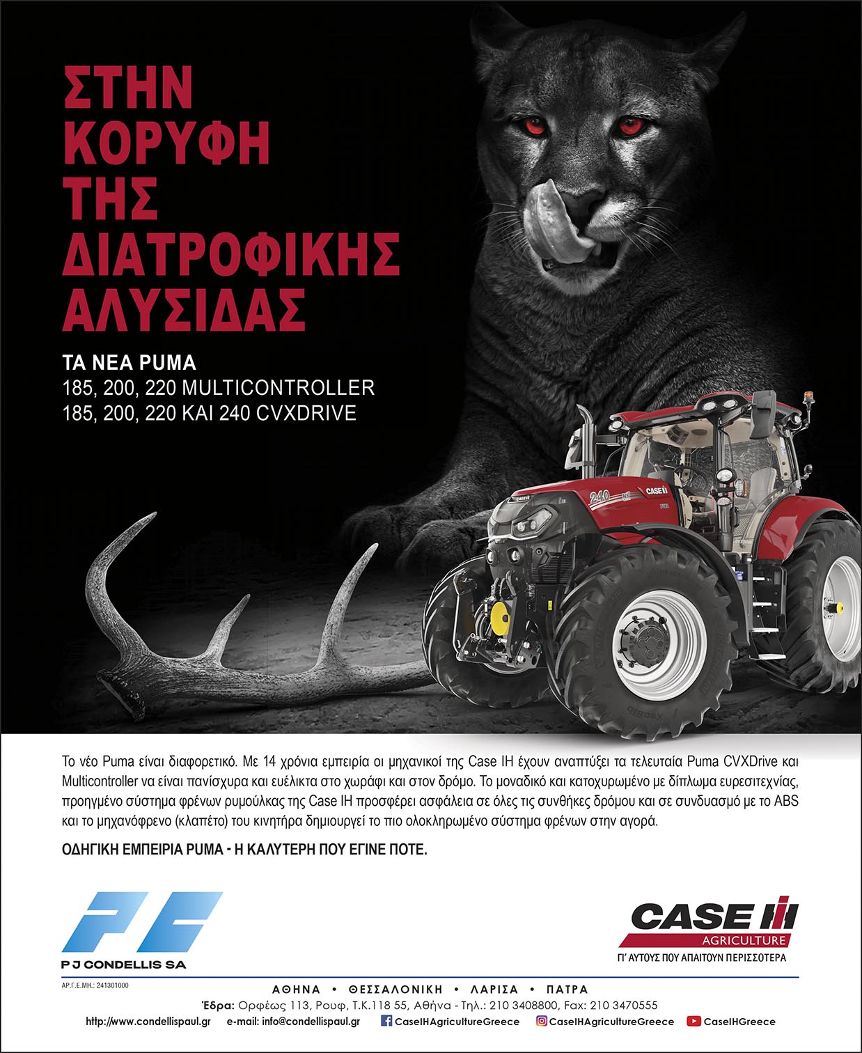 Τα τρακτέρ Puma 140-175 της Case IH επωφελούνται από μία σειρά νέων χαρακτηριστικών για τα μοντέλα του 2022, που έχουν σχεδιαστεί για να βελτιώσουν την παραγωγικότητα και να εμπλουτίσουν την εμπειρία της εργασίας. Σε συνέχεια της επιτυχίας της ανανεωμένης σειράς Puma 185-240 με μακρύ μεταξόνιο, η νέα σειρά Puma 140-175 με κοντό μεταξόνιο, με μέγιστη ισχύ από 155hp-200hp, αναβαθμίζεται σε όλους τους τομείς συμπεριλαμβανομένης της εμφάνισης του μηχανήματος, της συμπεριφοράς του σασμάν και της εργονομίας της καμπίνας.