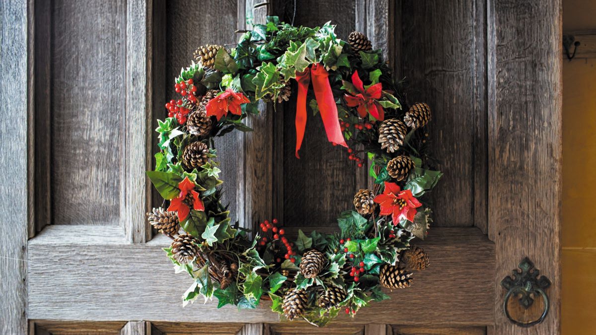 Την εξώπορτα των σπιτιών κοσμεί, επίσης, ένα στεφάνι από έλατο, διακοσμημένο με χριστουγεννιάτικα στολίδια. Σύμφωνα με την παράδοση, το στεφάνι φέρνει τύχη στους ενοίκους του σπιτιού.