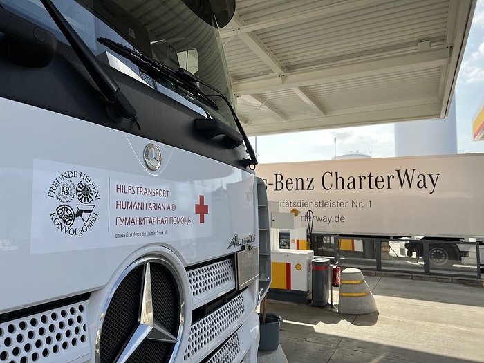 Μια ακόμη αυτοκινητοπομπή βοήθειας βρίσκεται στο στάδιο της προετοιμασίας. Ήδη την Παρασκευή αυτής της εβδομάδας, πέντε πλήρως φορτωμένα ημιρυμουλκούμενα φορτηγά Actros θα αναχωρήσουν για την Πολωνία. Για άλλη μία φορά θα μεταφέρουν ιατρικοφαρμακευτικά εφόδια που προορίζονται να βοηθήσουν τον πληθυσμό στην πόλη Λβιβ. Τα φορτηγά της Mercedes-Benz CharterWay και άλλων τμημάτων οδηγούν εθελοντές της Daimler Truck.