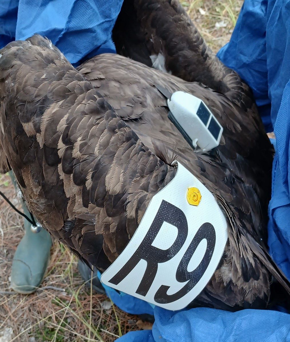 Η παγίδευση πραγματοποιείται το φθινόπωρο, ώστε να αποφεύγεται η όχληση κατά την αναπαραγωγική περίοδο που διαρκεί από τον Ιανουάριο έως και τα μέσα Σεπτεμβρίου. Η διαδικασία παγίδευσης είναι ιδιαίτερα απαιτητική και γίνεται από εξειδικευμένες ομάδες πεδίου, που διαθέτουν άδεια, με τη χρήση ειδικών παγίδων. Μετά την ασφαλή σύλληψη, οι επιστήμονες εξετάζουν το πουλί, τοποθετούν τον πομπό (σύγχρονης τεχνολογίας GPS–GSM, με ηλιακή φόρτιση), και το απελευθερώνουν στο φυσικό του περιβάλλον.