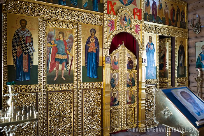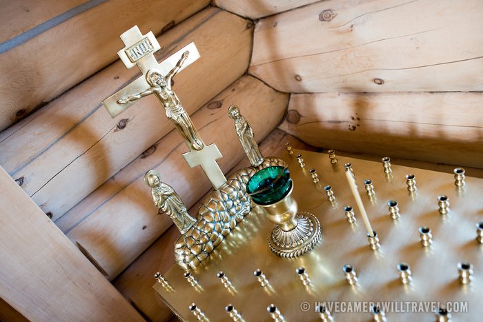 Για αυτό το λόγο οι κορμοί των δέντρων στερεώθηκαν με ειδικές αλυσίδες, ενώ μια ειδική επένδυση στο εσωτερικό προφυλάσσει την εκκλησία από το νερό της βροχής. Δύο Ρώσοι μοναχοί ήταν οι πρώτοι που λειτούργησαν εθελοντικά για πρώτη φορά στην Εκκλησία. Από τότε, οι ιερείς λειτουργούν εκ περιτροπής. Στα καθήκοντά τους περιλαμβάνονται οι προσευχές για τις ψυχές των Ρώσων που έχασαν τη ζωή τους σε διάφορες αποστολές.