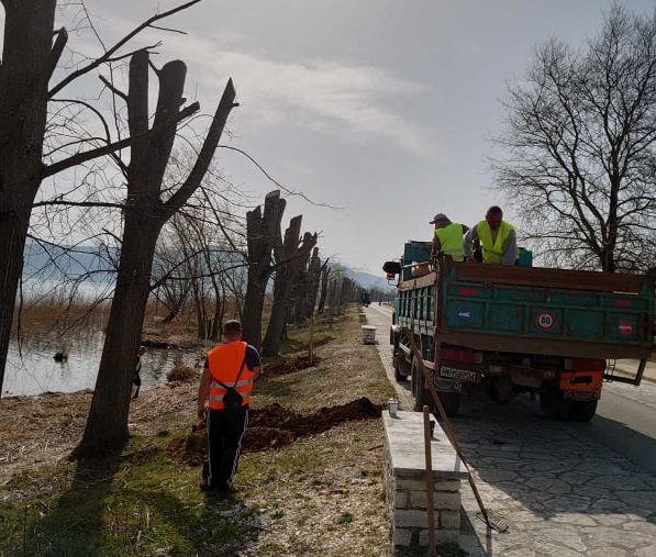 «Τον περασμένο Οκτώβριο και στο πλαίσιο του σχεδιασμού πρόληψης της Πολιτικής Προστασίας της Περιφέρειας Ηπείρου, κλαδεύτηκαν τα δέντρα (λεύκες), που βρισκόταν περιμετρικά της παραλίμνιας περιοχής. Τα δέντρα αυτά είχαν ψηλώσει πολύ, γεγονός που τα καθιστούσε επικίνδυνα για πρόκληση ατυχήματος, ακόμη και θανατηφόρου, σε διερχόμενους πολίτες, περιπατητές, δρομείς και ποδηλάτες.
