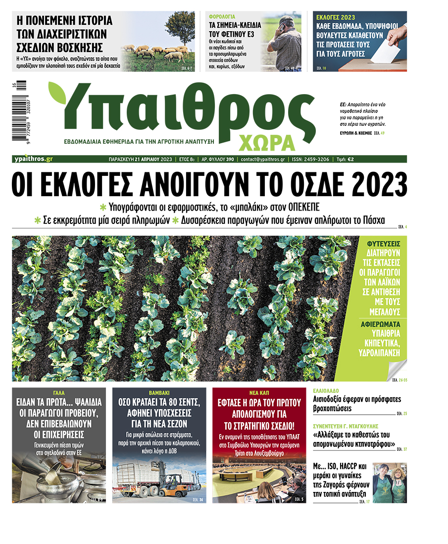Διαβάστε επίσης στην εφημερίδα «Ύπαιθρος Χώρα» που κυκλοφορεί την Παρασκευή 21 Απριλίου στα περίπτερα όλης της Ελλάδας: