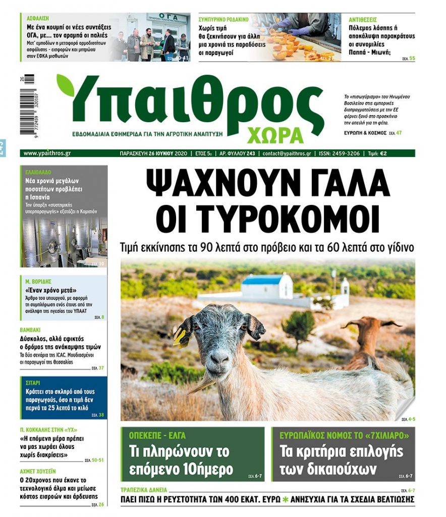 Διαβάστε επίσης στην εφημερίδα «Υπαιθρος Χώρα» που κυκλοφορεί την Παρασκευή 26 Ιουνίου σε περίπτερα και σουπερμάρκετ σε όλη την Ελλάδα: