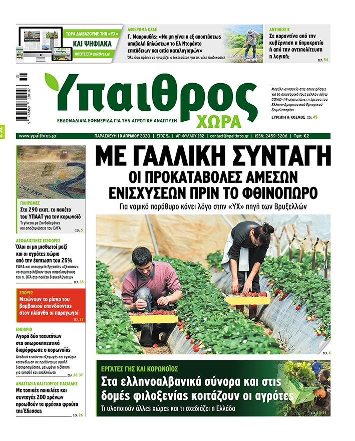 Διαβάστε στην «ΥΧ»: Με Γαλλική συνταγή οι προκαταβολές άμεσων ενισχύσεων πριν το φθινόπωρο