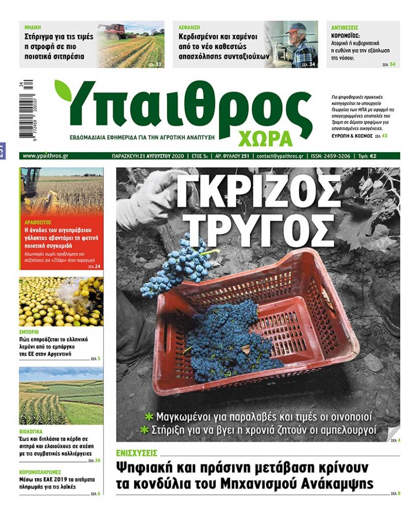 Διαβάστε επίσης στην εφημερίδα «Ύπαιθρος Χώρα» που κυκλοφορεί την Παρασκευή 21 Αυγούστου στα περίπτερα όλης της χώρας: