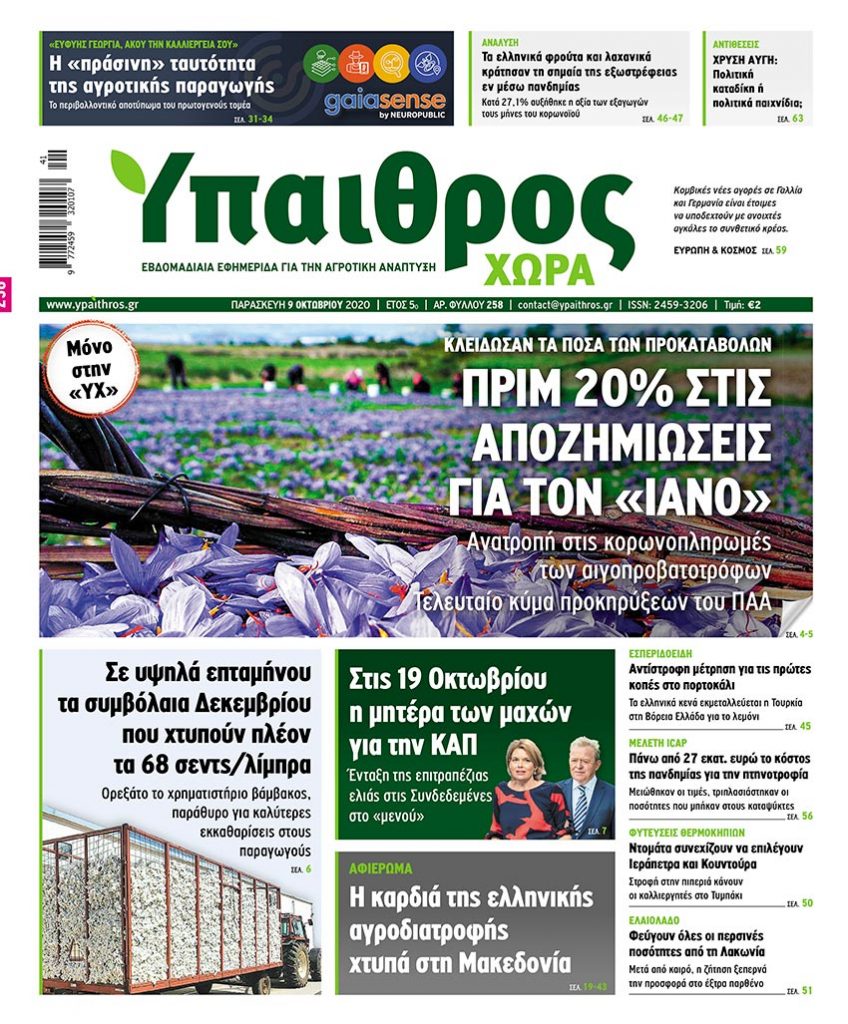 Διαβάστε επίσης στην εφημερίδα «Ύπαιθρος Χώρα» που κυκλοφορεί την Παρασκευή 9 Οκτωβρίου στα περίπτερα όλης της Ελλάδας: