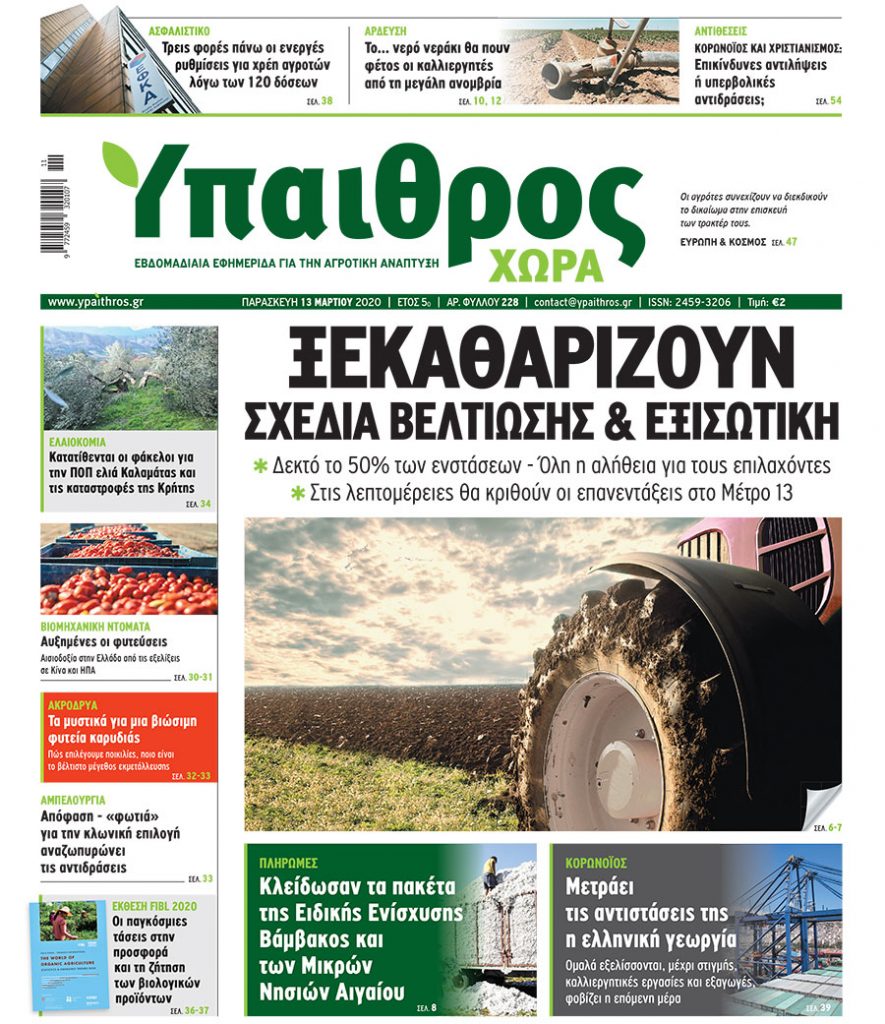Διαβάστε επίσης στην εφημερίδα «Ύπαιθρος Χώρα» που κυκλοφορεί την Παρασκευή 13 Μαρτίου στα περίπτερα όλης της χώρας: