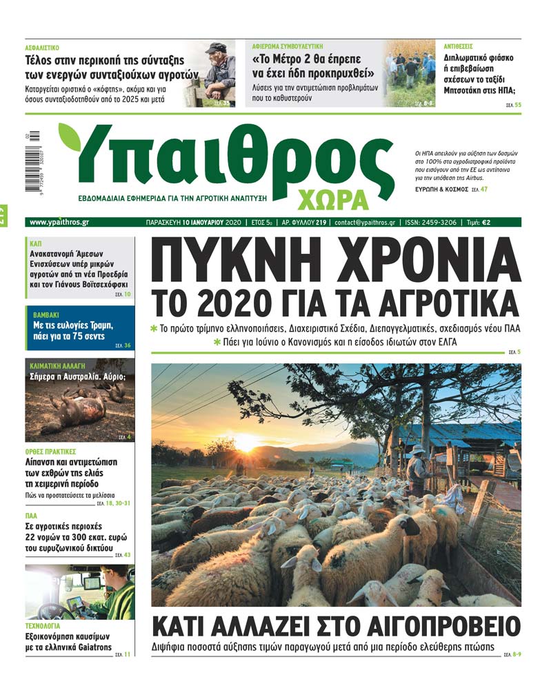 Διαβάστε στην «ΥΧ»: Πυκνή χρονιά το 2020 για τα αγροτικά
