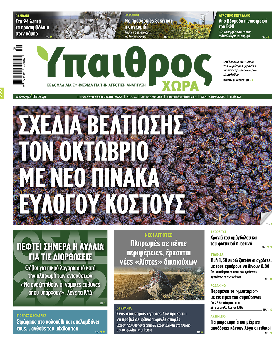 Διαβάστε επίσης στην εφημερίδα «Ύπαιθρος Χώρα» που κυκλοφορεί την Παρασκευή 26 Αυγούστου στα περίπτερα όλης της Ελλάδας: