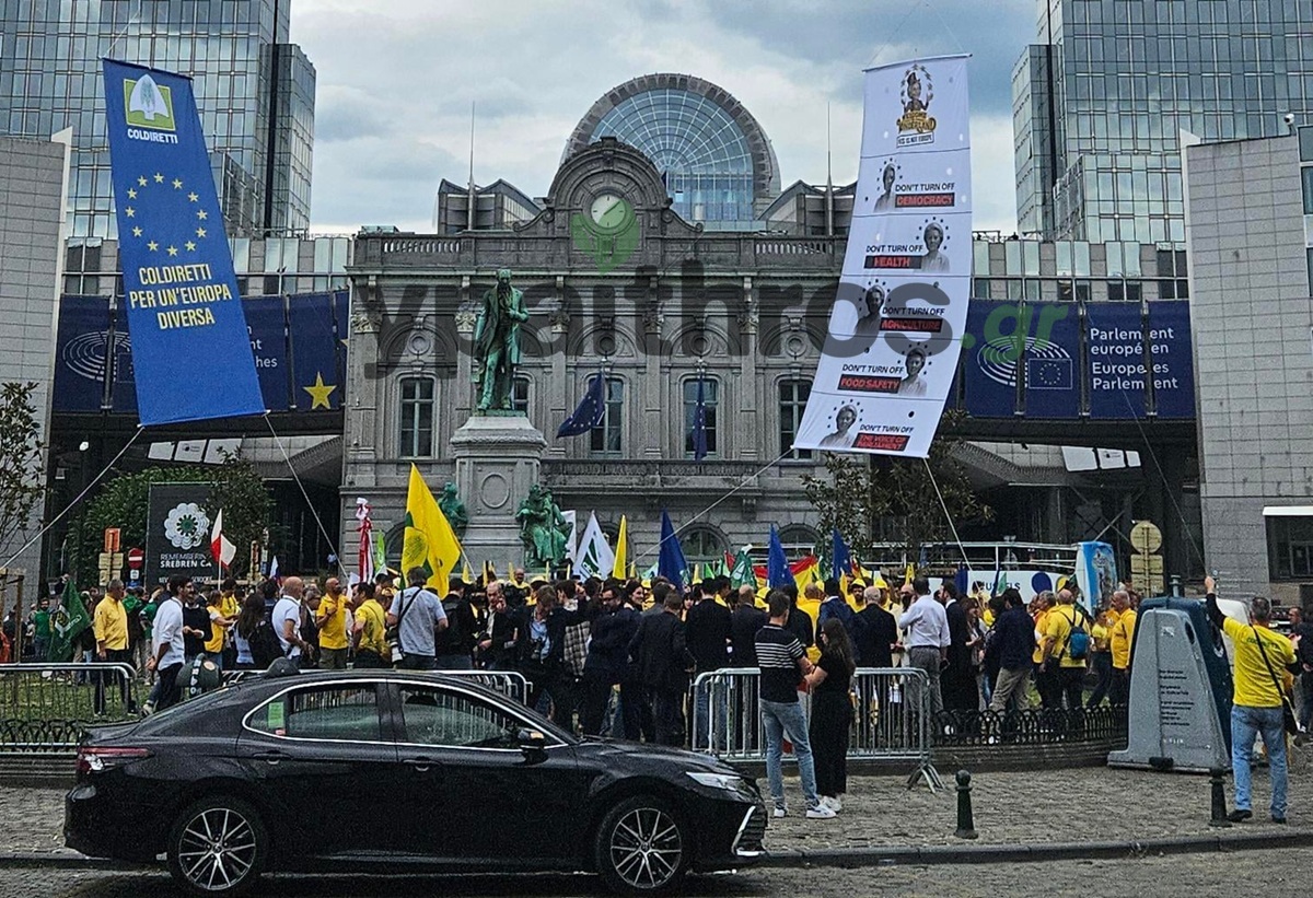 Σε τεταμένο κλίμα και με εμφανή σύγχυση στους κόλπους των ευρωπαϊκών θεσμών, βρίσκεται σε εξέλιξη αυτή την ώρα η μεγάλη διαμαρτυρία αγροτών στο Ευρωπαϊκό Τετράγωνο των Βρυξελλών. Αγρότες από διάφορες χώρες της Ευρώπης, μεταξύ των οποίων και περίπου 100 μέλη της ιταλικής ένωσης Coldiretti, συγκεντρώθηκαν στην Πλατεία Λουξεμβούργου, κρατώντας πλακάτ και φωνάζοντας συνθήματα όπως «Η Ευρώπη δεν είναι Vonderland», σαρκαστική αναφορά στην Πρόεδρο της Ευρωπαϊκής Επιτροπής, Ούρσουλα φον ντερ Λάιεν. Λίγο αργότερα, ξεκίνησαν πορεία προς το κτίριο Berlaymont, την έδρα της Επιτροπής, όπου σκοπεύουν να τοποθετήσουν συμβολικά ένα ζευγάρι μπότες.