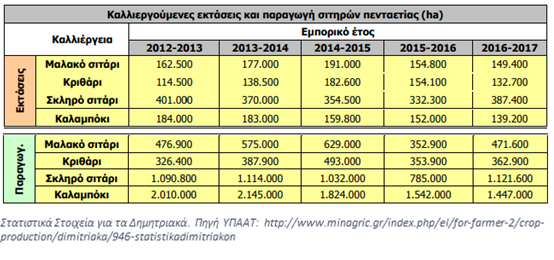 Τα δημητριακά είναι η σπουδαιότερη κατηγορία φυτών στην διατροφή και ένα από τα πρώτα φυτά που καλλιέργησε ο άνθρωπος. Στην Ελλάδα καλλιεργούνται σε κλίμακα εκατοντάδων εκταρίων τα εξής είδη: σιτάρι σκληρό, σιτάρι μαλακό, κριθάρι και καλαμπόκι.