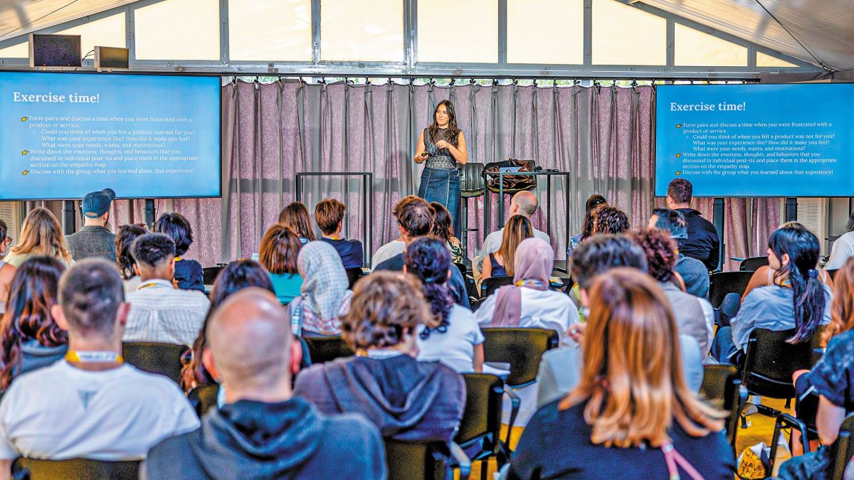 Με επικοινωνιακό και διαδραστικό τρόπο η Felicitas Carrique, Εκτελεστική Διευθύντρια, της News Product Alliance πραγματοποίησε το εργαστήριο «Από το χάος στη διαύγεια: Μετατρέποντας τις προκλήσεις της αίθουσας σύνταξης σε προϊόντα με επίκεντρο το κοινό» για δημοσιογράφους που θέλουν τα ρεπορτάζ τους να ανταποκρίνονται στις πραγματικές ανάγκες του κοινού. Έθεσε μια σειρά ερωτήσεων όπως «πώς μπορούν να καταναλώσουν την πληροφορία οι άνθρωποι», τονίζοντας πως είναι σημαντικό να κατανοήσουμε τι είναι πολύτιμο γι’ αυτούς. Προχώρησε σε ασκήσεις ανά δύο στην κατεύθυνση σκέφτομαι και αισθάνομαι.