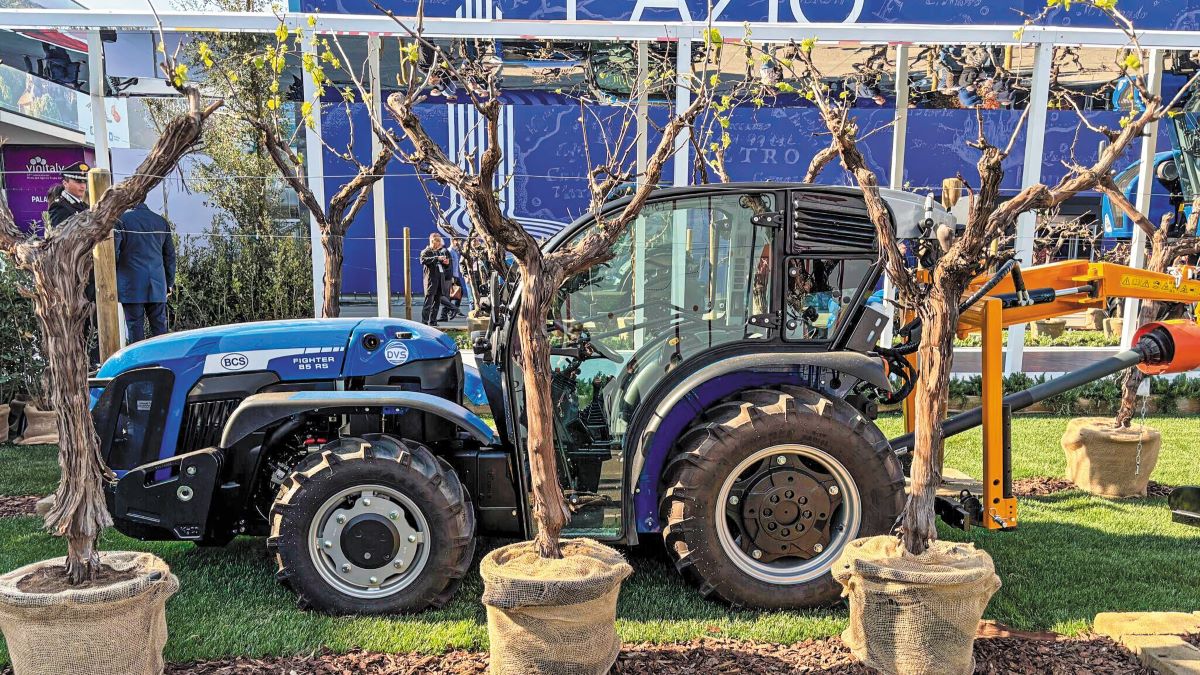 Μπαίνοντας στον «αμπελώνα» που είχε στηθεί στο εκθεσιακό κέντρο της Βερόνα, βρήκαμε στην πρώτη σειρά δύο εξειδικευμένα τρακτέρ: Το Landini Rex 4-120F με 112 ίππους και κιβώτιο ταχυτήτων RoboShift και το σούπερ χαμηλό BCS Fighter 85 RS 75 ίππων με κατευθυντήριους τροχούς. Και τα δύο μοντέλα διαθέτουν καμπίνες κατηγορίας 4 που εγγυώνται τη μέγιστη προστασία του χειριστή κατά τη διάρκεια των επεμβάσεων με φυτοφάρμακα.