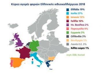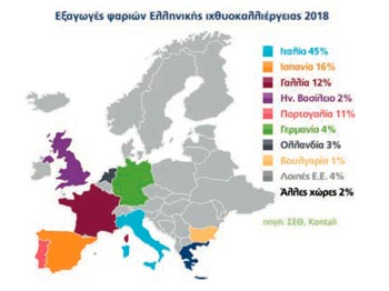 Για τις ελληνικές επιχειρήσεις ιχθυοκαλλιεργειών, η ιταλική αγορά αποτελεί εδώ και δεκαετίες τον Νο 1 εξαγωγικό προορισμό. Σύμφωνα με την τελευταία έκθεση του Συνδέσμου Ελληνικών Θαλασσοκαλλιεργειών (ΣΕΘ), το 2018 η Ιταλία απορρόφησε το 45% των ελληνικών εξαγωγών τσιπούρας και λαβρακιού, με τις συνολικές ποσότητες να ανέρχονται σε 42.934 τόνους και να αντιστοιχούν στο 55% των εισαγωγών της χώρας στα δύο είδη. Ειδικότερα, το 2018 εισήγαγε 37.242 τόνους τσιπούρας, εκ των οποίων οι 22.900 τόνοι, δηλαδή το 61,5% προήλθε από την Ελλάδα. Λαμβάνοντας υπόψη και την ιδιοπαραγωγή της Ιταλίας, η Ελλάδα κατείχε τη χρονιά αυτή μερίδιο αγοράς 52% στο σύνολο των πωλήσεων νωπής τσιπούρας στη χώρα. Αντίστοιχα, από τους 30.750 τόνους λαβρακιού που εισήγαγε το 2018, οι 20.034 τόνοι, ήτοι το 65,15% προήλθε από την Ελλάδα με το μερίδιο αγοράς της χώρας μας στο σύνολο της ιταλικής αγοράς νωπού λαβρακιού να ανέρχεται στο 56%.