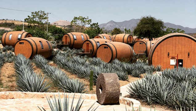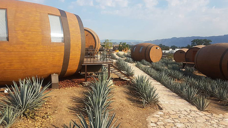 Τα 34 δωμάτια σε σχήμα μεγάλου βαρελιού τεκίλας βρίσκονται διάσπαρτα σε χωράφια αγαύης, που είναι το φυτό από το οποίο προέρχεται η τεκίλα.
