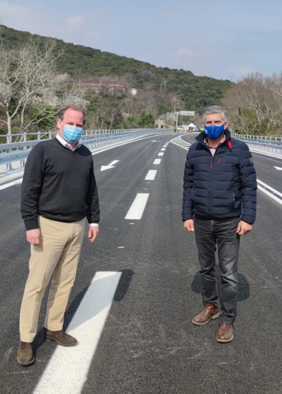 «Σήμερα παραδίδουμε στην κυκλοφορία την ιστορική γέφυρα του Πηνειού στα Τέμπη. Ένα έργο συμβολικό, καθώς κατασκευάστηκε το 1960 και στο οποίο καταφέραμε να ολοκληρώσουμε έγκαιρα τις εργασίες αναβάθμισης παρά την πανδημία».