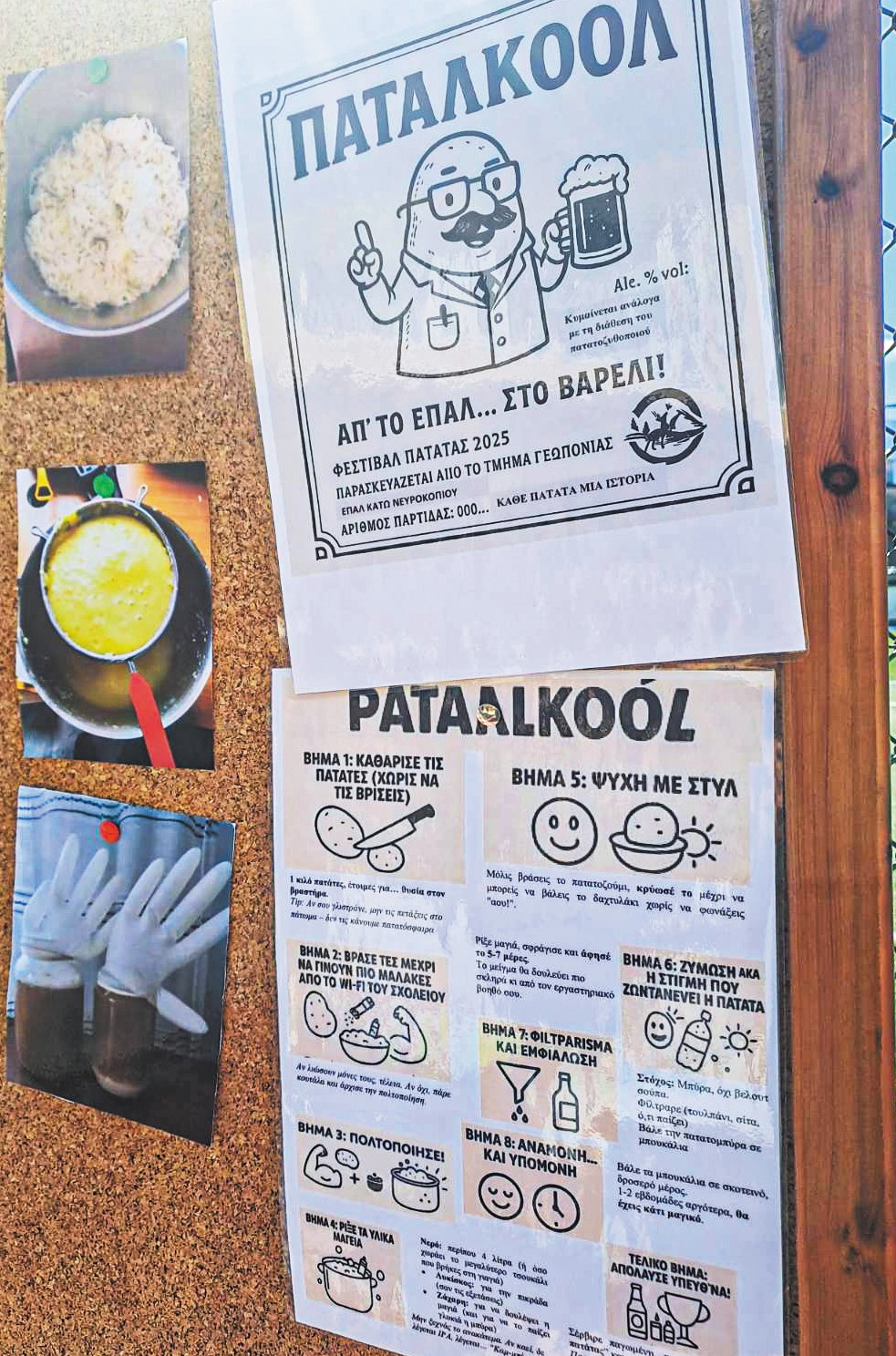 Ο διευθυντής του σχολείου πρότεινε στους γεωπόνους εκπαιδευτικούς να σχεδιάσουν κάποια δράση για τη γιορτή και εκείνοι προχώρησαν σε σχεδιασμό μαζί με τους μαθητές. «Ο συνάδελφος ανέδειξε τις ιδιαιτερότητες και τις συνθήκες καλλιέργειας των ποικιλιών κι εγώ συζήτησα με τα παιδιά. Στο ΓΕΛ, είχαν παρασκευάσει βότκα από πατάτα και σκέφτηκα την μπύρα από πατάτα, που φτιάχνουν σε Πολωνία και Γερμανία, κυρίως ερασιτεχνικά», επισημαίνει. Ο ίδιος διαπίστωσε ότι δεν απαιτείται ιδιαίτερος εξοπλισμός και έτσι ξεκίνησαν την υλοποίηση. Σε ορισμένα θέματα, όπως για παράδειγμα στις ετικέτες, κατέφυγαν στην τεχνητή νοημοσύνη. Βέβαια, δεν έλειψαν και οι πατέντες. Στο καπάκι του δοχείου, που γίνεται η ζύμωση, χρειάζεται μια νεροπαγίδα για να επιτρέπει την έξοδο του διοξειδίου του άνθρακα, αλλά να μην αφήνει να εισέρχονται βακτήρια από τον εξωτερικό ατμοσφαιρικό αέρα.