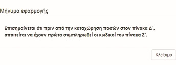 Η καταχώριση των οικονομικών δεδομένων, όπως αναφέρεται και στο εγχειρίδιο της ΑΑΔΕ, πρέπει να ξεκινάει από τον Πίνακα Ζ, έτσι ώστε να μεταφέρονται τα ποσά που δεν επιδέχονται τροποποιήσεις στον Πίνακα Δ για την εξαγωγή των οικονομικών αποτελεσμάτων. Γι’ αυτό, άλλωστε, με την είσοδο στην εφαρμογή, ο χρήστης ειδοποιείται με σχετικό μήνυμα ότι πρέπει να προηγηθεί η συμπλήρωση του Πίνακα Ζ πριν από τη συμπλήρωση του Πίνακα Δ.