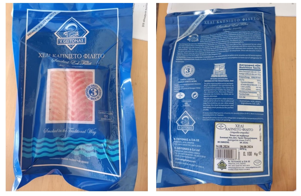 Ο Ε.Φ.Ε.Τ. και ειδικότερα η Περιφερειακή Διεύθυνση Ηπείρου, κατά τη διενέργεια Ελέγχων στο πλαίσιο του Προγράμματος «Επίσημος Έλεγχος για την παρακολούθηση Μικροβιολογικών Κριτηρίων Ασφάλειας Τροφίμων» έτους 2024, προέβη σε δειγματοληψία καπνιστού χελιού, με την εμπορική ονομασία “ΧΕΛΙ ΚΑΠΝΙΣΤΟ ΦΙΛΕΤΟ” με αριθμό παρτίδας 1117324146 και ημερομηνία λήξεως 29/08/2024, η οποία παράγεται και συσκευάζεται στην Ελλάδα από την Επιχείρηση Β.ΓΕΙΤΟΝΑΣ & ΣΙΑ Ε.Ε. που εδρεύει στο Ψαθοτόπι Άρτας. Μετά την εξέταση από το Κτηνιατρικό Εργαστήριο Ιωαννίνων, διαπιστώθηκε στο ανωτέρω δείγμα η παρουσία του παθογόνου μικροοργανισμού Listeria monocytogenes.