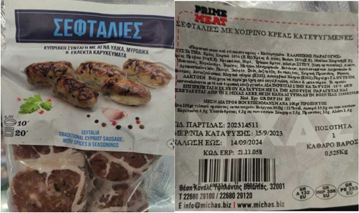 Ο Ε.Φ.Ε.Τ. και ειδικότερα η Περιφερειακή Διεύθυνση Κρήτης, κατά τη διενέργεια ελέγχων στο πλαίσιο του Προγράμματος «Επίσημος Έλεγχος Μικροβιολογικών Κριτηρίων Ασφάλειας Τροφίμων» έτους 2023, προέβη σε δειγματοληψία του προϊόντος, «ΣΕΦΤΑΛΙΕΣ ΜΕ ΧΟΙΡΙΝΟ ΚΡΕΑΣ ΚΑΤΕΨΥΓΜΕΝΕΣ», με αριθ. παρτίδας: 202314511 και ημ. ανάλωσης έως: 14.09.24, που παρασκευάζεται από την εταιρεία «Χ. ΜΙΧΑΣ ΑΕΒΕ» στη Θέση Κανάλι, Υψηλάντη Βοιωτίας.