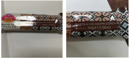 Ο Ε.Φ.Ε.Τ. και ειδικότερα η Περιφερειακή Διεύθυνση Αττικής του Ε.Φ.Ε.Τ., κατά τη διενέργεια ελέγχων, στο πλαίσιο του Προγράμματος «Επίσημος Έλεγχος για την παρουσία αλλεργιογόνων ουσιών σε τρόφιμα» έτους 2023, προέβη σε δειγματοληψία παστελιού με μαύρη σοκολάτα εμπορικής ονομασίας: «JANNIS ΠΑΣΤΕΛΙ ΜΕ ΜΑΥΡΗ ΣΟΚΟΛΑΤΑ» συσκευασίας 30g, με ημερομηνία ανάλωσης 12/6/24 και παρτίδας 3L121222, το οποίο παράγεται στην Ελλάδα από την επιχείρηση «ΓΙΑΝΝΗΣ Α.Ε.Β.Ε.», που εδρεύει στο Κιλκίς.