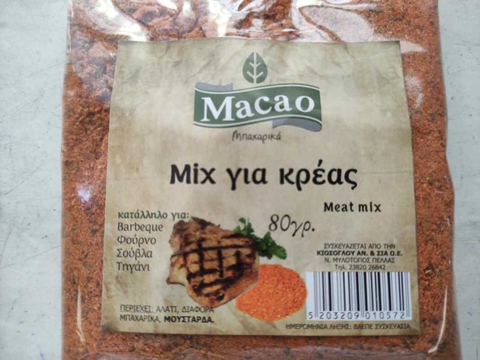 Ο Ε.Φ.Ε.Τ. και ειδικότερα η Περιφερειακή Διεύθυνση Κεντρικής Μακεδονίας, κατά τη διενέργεια ελέγχων στο πλαίσιο του Προγράμματος «Επίσημος Έλεγχος για την παρουσία αλλεργιογόνων ουσιών σε ορισμένα είδη τροφίμων» έτους 2021, προέβη σε δειγματοληψία τροφίμου με στοιχεία: «ΜΙΓΜΑ ΜΠΑΧΑΡΙΚΩΝ» με την επωνυμία MACAO MIX ΓΙΑ ΚΡΕΑΣ, με ημερομηνία ανάλωσης κατά προτίμηση 12/2024 και αριθμό παρτίδας LOT 2005 προέλευσης Ε.Ε. σε διαφανή περιέκτη των 80 γραμμαρίων που συσκευάζεται και διανέμεται στην Ελλάδα από την ΚΙΟΣΟΓΛΟΥ ΑΝ. & ΣΙΑ Ο.Ε.-«MACAO» με έδρα τον Νέο Μυλότοπο Π.Ε. Πέλλας.