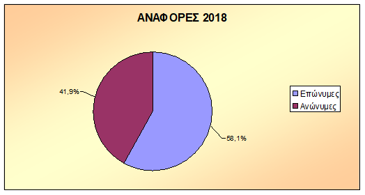 Το 58,1% των καταγγελιών ήταν επώνυμες ενώ το 41,9% ήταν ανώνυμες.