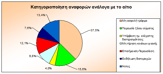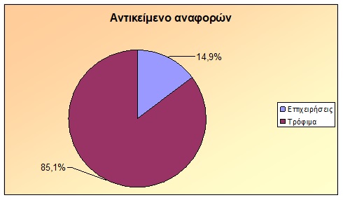Το 14,9% των καταγγελιών αφορούσε σε επιχειρήσεις ενώ το 85,1% αφορούσε σε τρόφιμα.