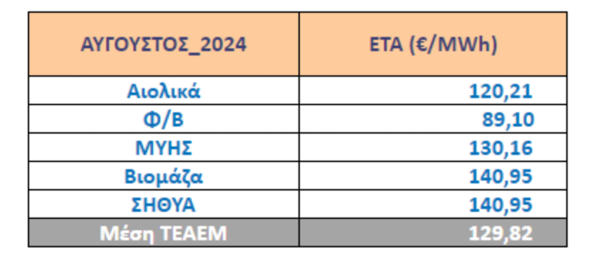 Ειδική τιμή αγοράς (Ε.Τ.Α.) τεχνολογιών ΑΠΕ & ΣΗΘΥΑ Αυγούστου 2024 – ΔΙΟΡΘΩΤΙΚΗ