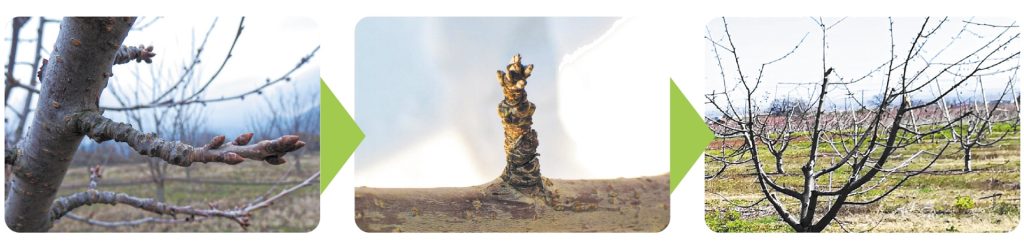 Πραγματοποιείται την περίοδο του Μαρτίου, από το φούσκωμα των οφθαλμών έως και την άνθιση και προκαλεί μικρότερη βλαστική ανάπτυξη.