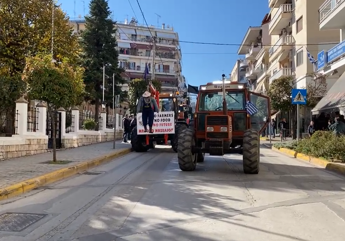 Διαμαρτυρία αγροτών στο κέντρο της Βέροιας με τρακτέρ