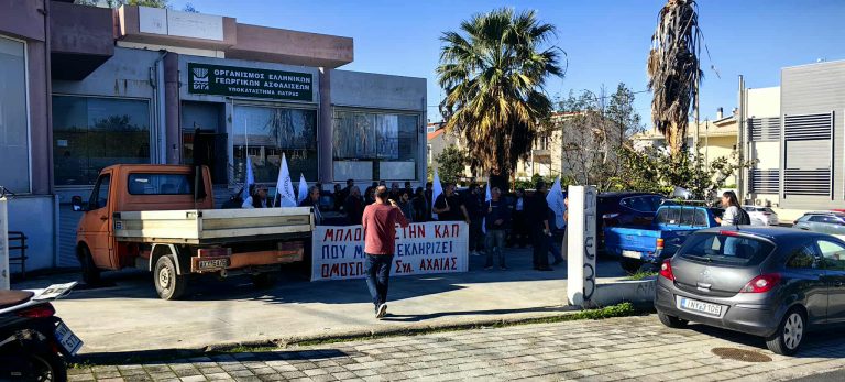 Πάτρα: Συγκέντρωση διαμαρτυρίας αγροτών έξω από τα γραφεία του ΕΛΓΑ