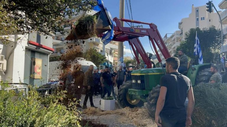 Τρακτέρ στους κεντρικούς δρόμους του Ρεθύμνου – Άχυρο, χώμα και φέρετρο έξω από το γραφείο του Γ. Κεφαλογιάννη