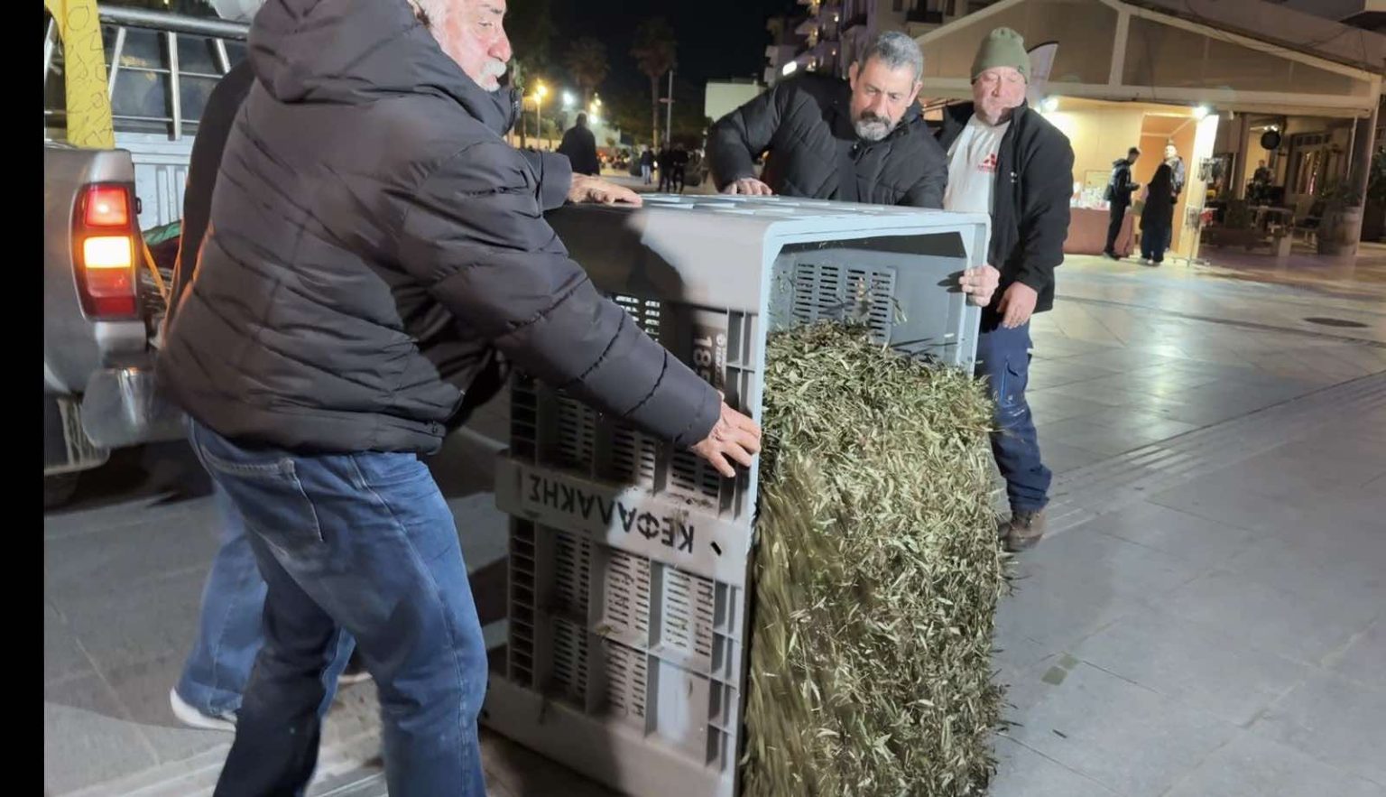 Συμβολική διαμαρτυρία αγροτών στα γραφεία της Περιφέρειας Κρήτης – Έριξαν φύλλα ελιάς στην πλατεία