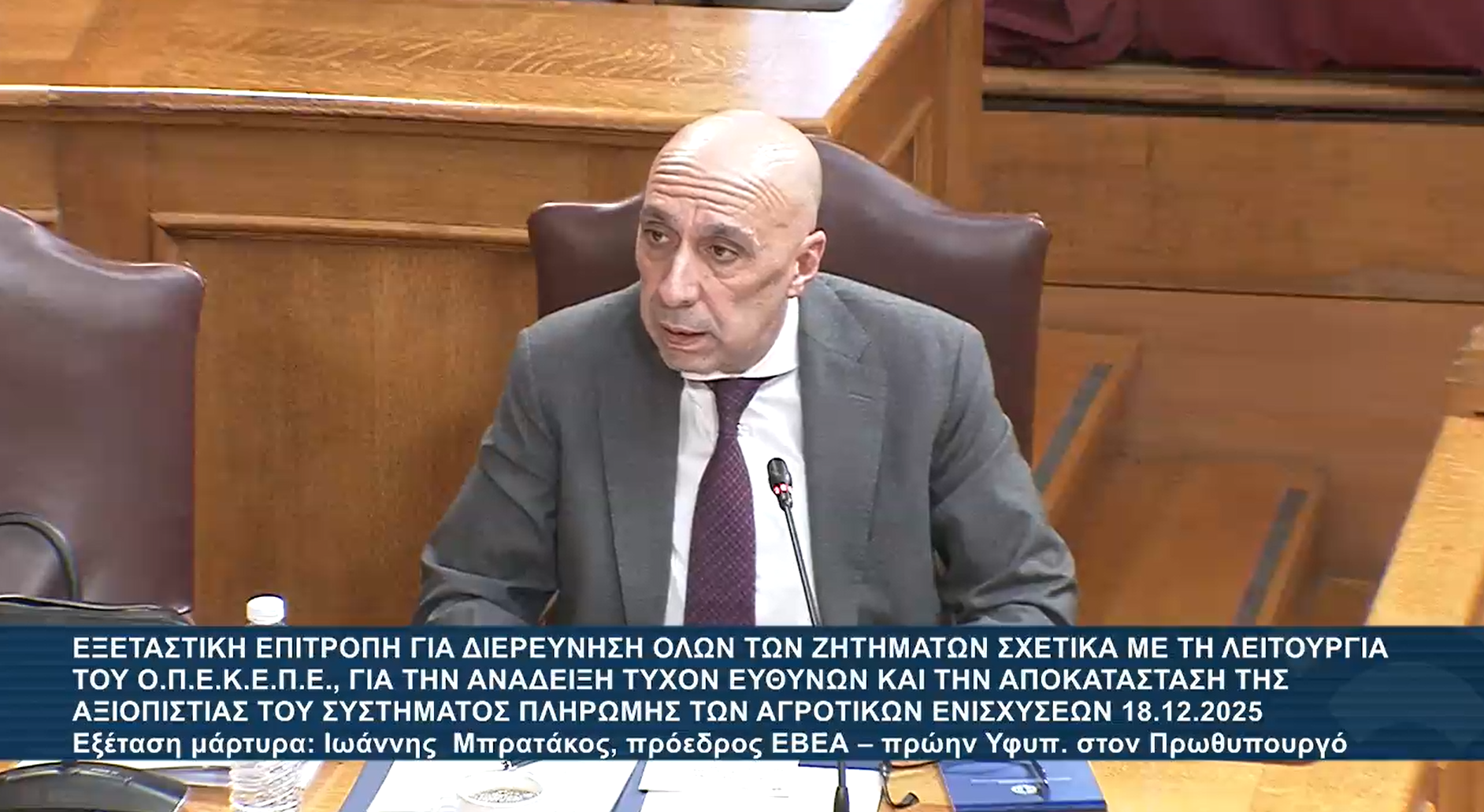 Εξεταστική ΟΠΕΚΕΠΕ: Κατέθεσε o Iωάννης Μπρατάκος, πρόεδρος ΕΒΕΑ – πρώην Υφυπουργός στον Πρωθυπουργό