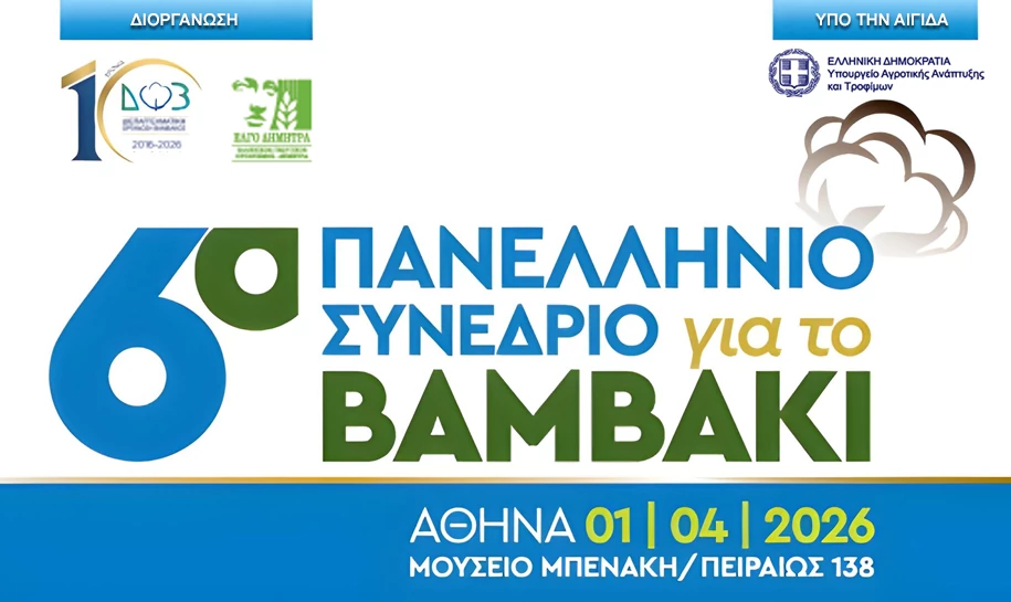 Η Διεπαγγελματική Οργάνωση Βάμβακος – ΔΟΒ σε συνεργασία με τον ΕΛΓΟ ΔΗΜΗΤΡΑ διοργανώνουν το «6ο Πανελλήνιο Συνέδριο για το βαμβάκι», την Τετάρτη 1 Απριλίου και ώρα έναρξης 09:00, στην Αθήνα (Μουσείο Μπενάκη / Πειραιώς 138). Το συνέδριο τελεί υπό την αιγίδα του Υπουργείου Αγροτικής Ανάπτυξης και Τροφίμων. Κατά τις εργασίες του συνεδρίου, εκπρόσωποι της πολιτικής ηγεσίας, θεσμικοί […]