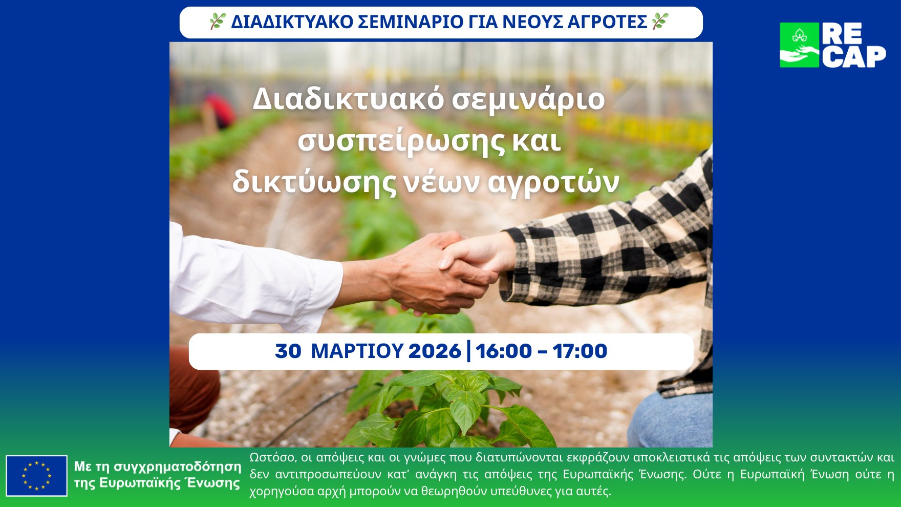 ΠΕΝΑ – RECAP: Διαδικτυακό σεμινάριο συσπείρωσης και δικτύωσης νέων αγροτών