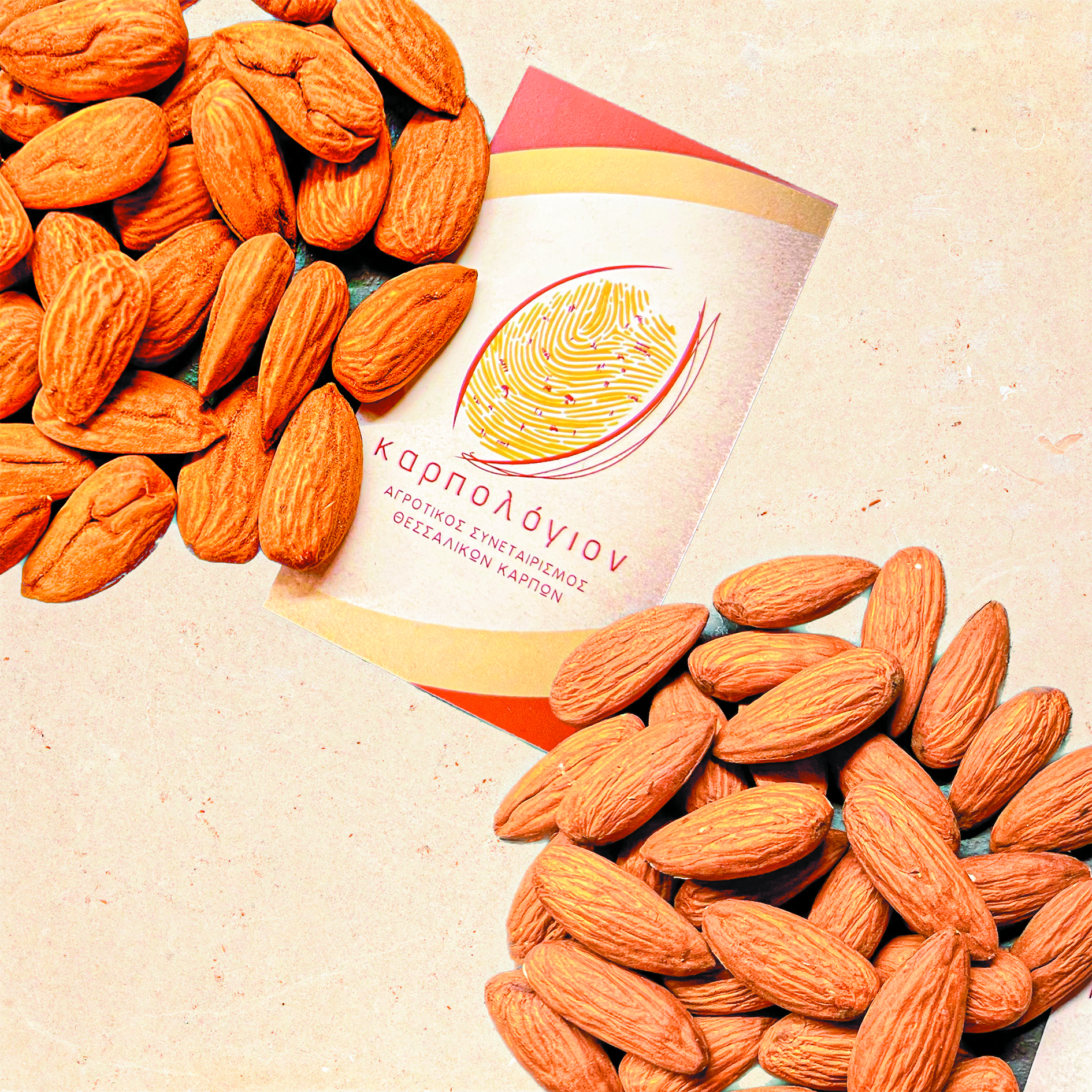 Έτσι γεννήθηκε το Karpologio, μία ομάδα νέων παραγωγών που καλλιεργούν τους αμυγδαλεώνες τους στον εύφορο θεσσαλικό κάμπο. Οι ίδιοι χρησιμοποιούν τη μέθοδο της καλλιέργειας με πυκνή φύτευση αμυγδαλιάς και συλλέγουν τον καρπό με μηχανή.